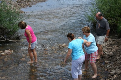 After about 5 hours of driving down through the winding roads, it was time for a break. We stopped at a little creek which Pastor Paul referred to as "Babbling Brook". The water was quite cool and no one fell in.